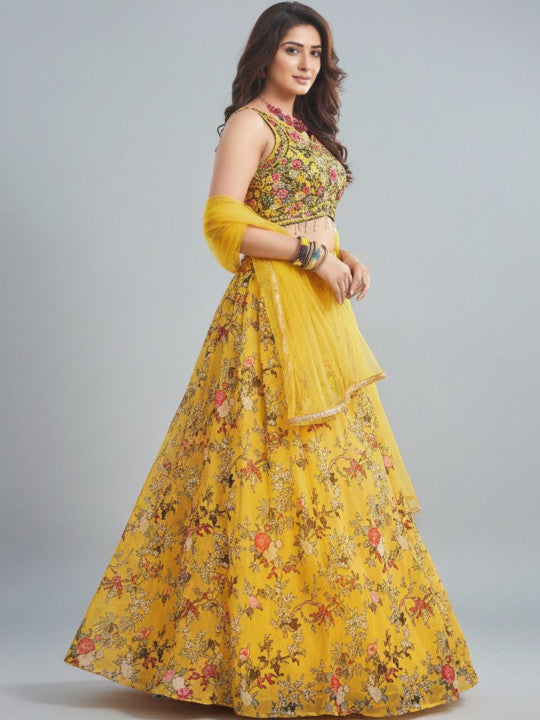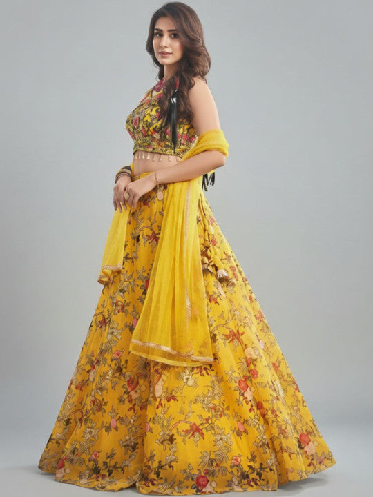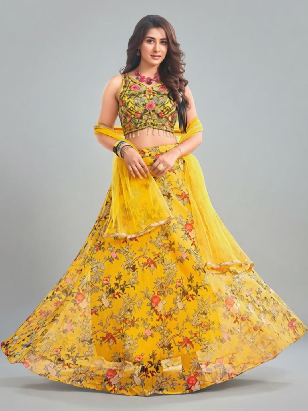 - Readymade lehenga choli featuring an elegant floral print.