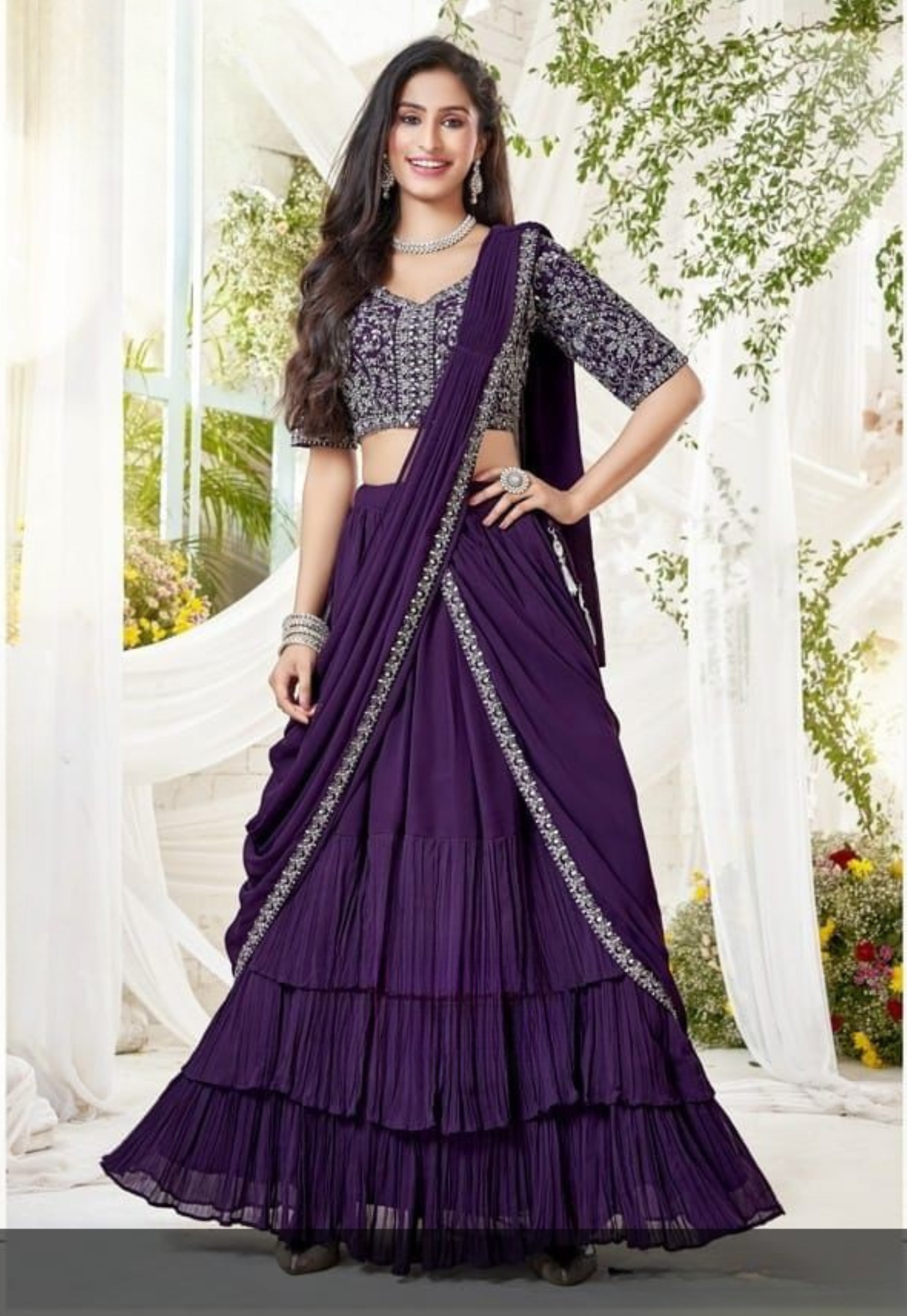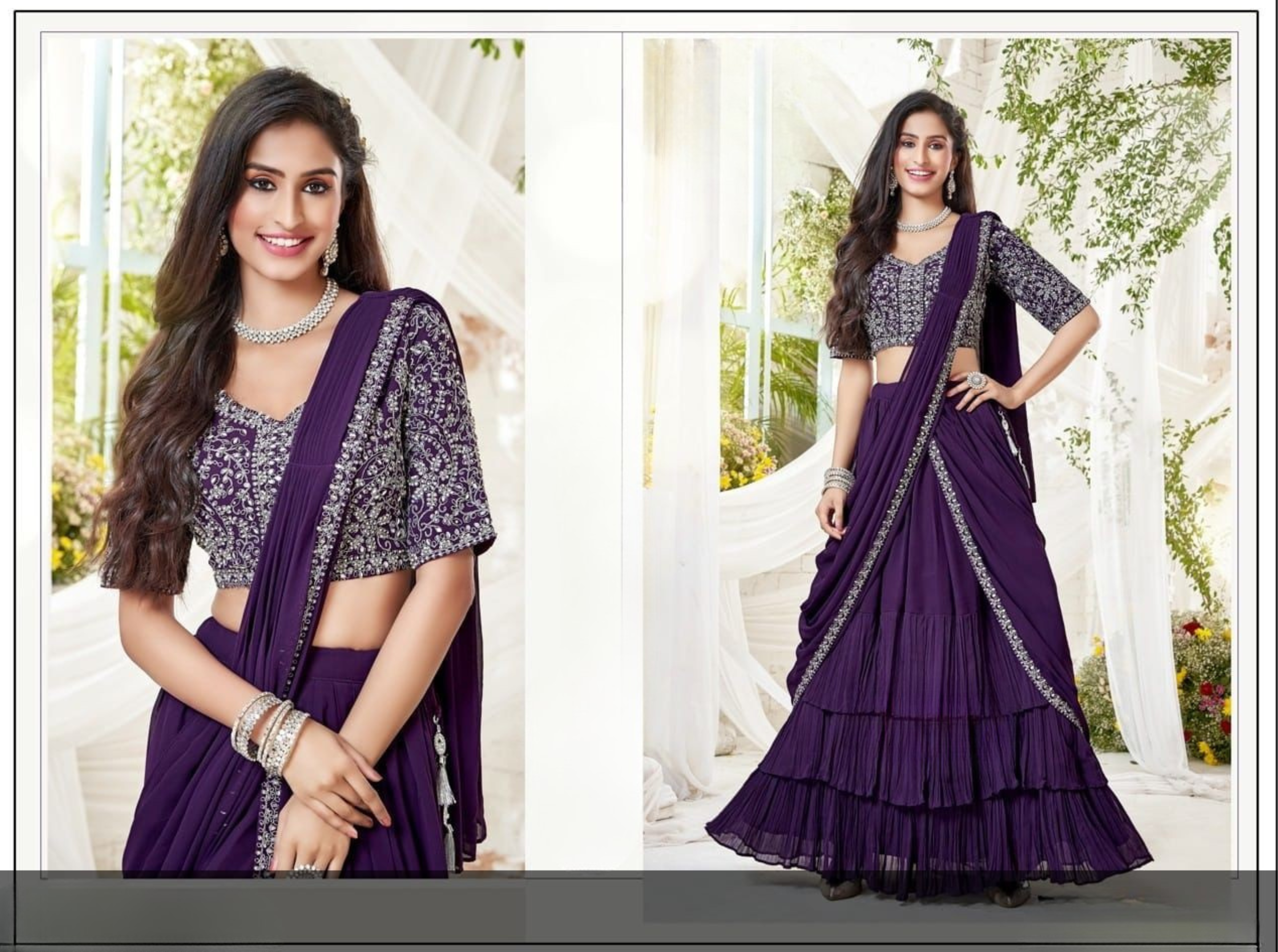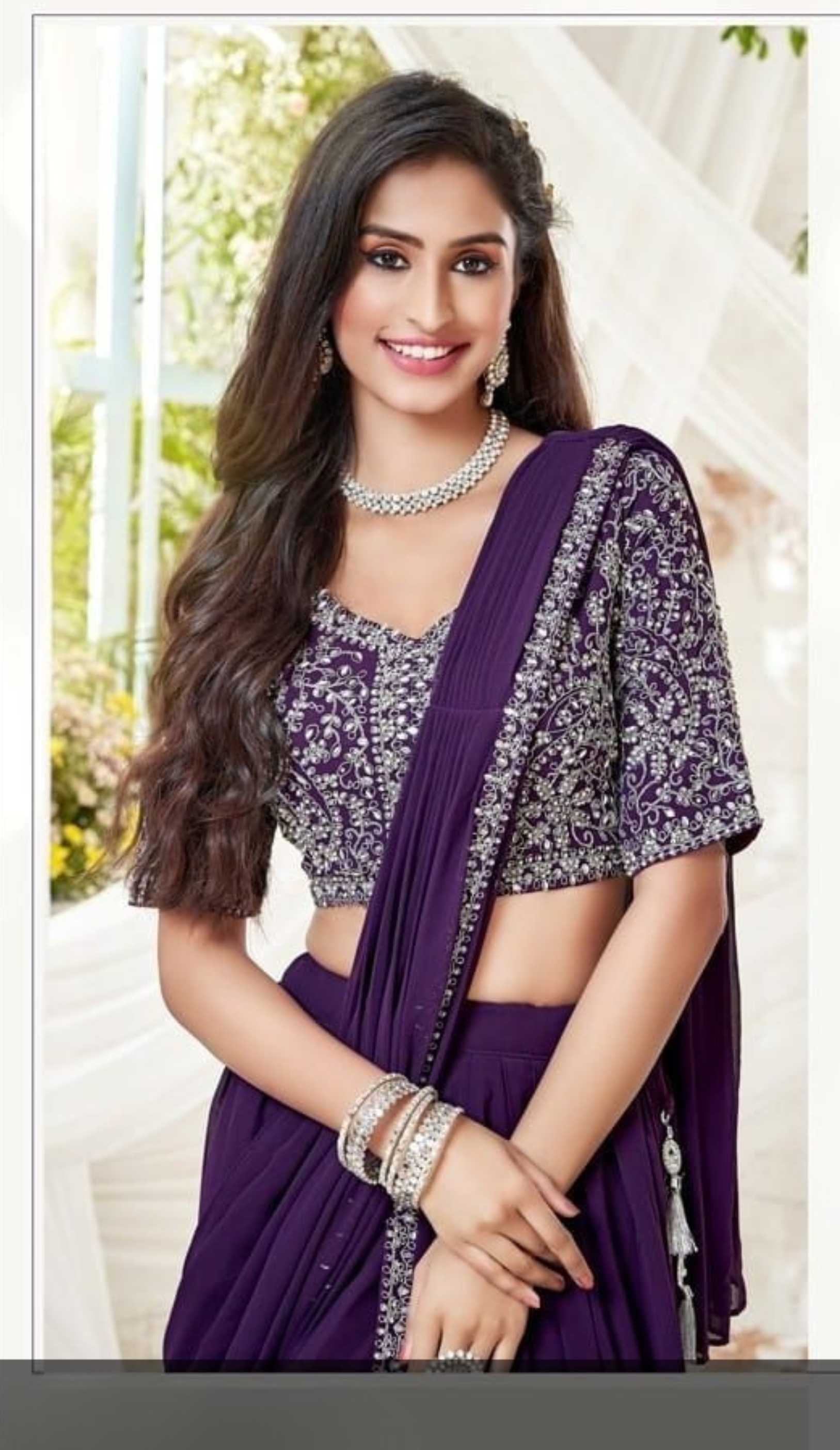 - Premium Purple Georgette Readymade Lehenga Saree.