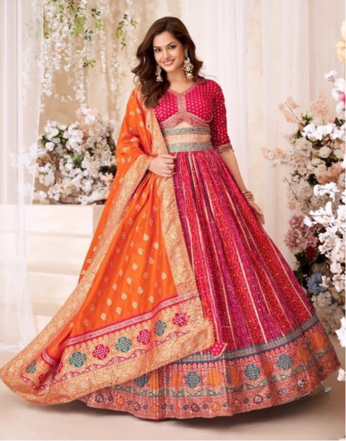 Mili Silk Printed Embroidered Readymade Lehenga Choli