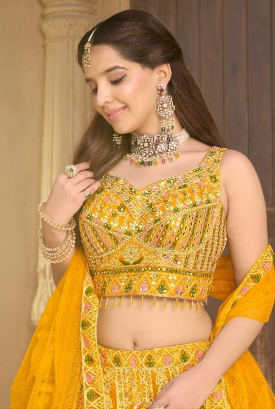 Colorful Yellow Heavy Embroidered & Sequins Readymade Lehenga Choli