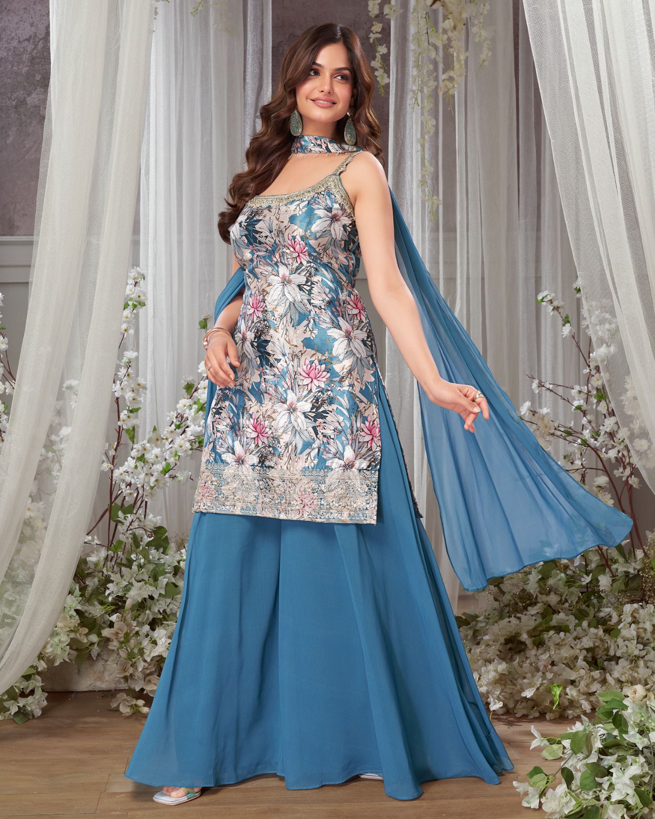- Elegant Floral Plazo Suit with a stunning, graceful look.