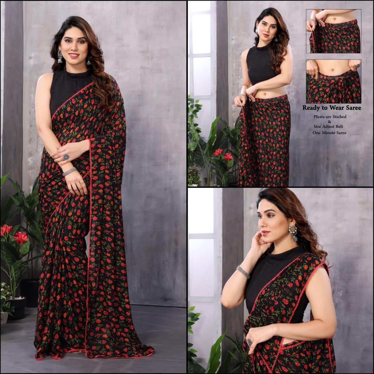 - Elegant Georgette Pre-Pleated Readymade Saree for a flawless drape.
