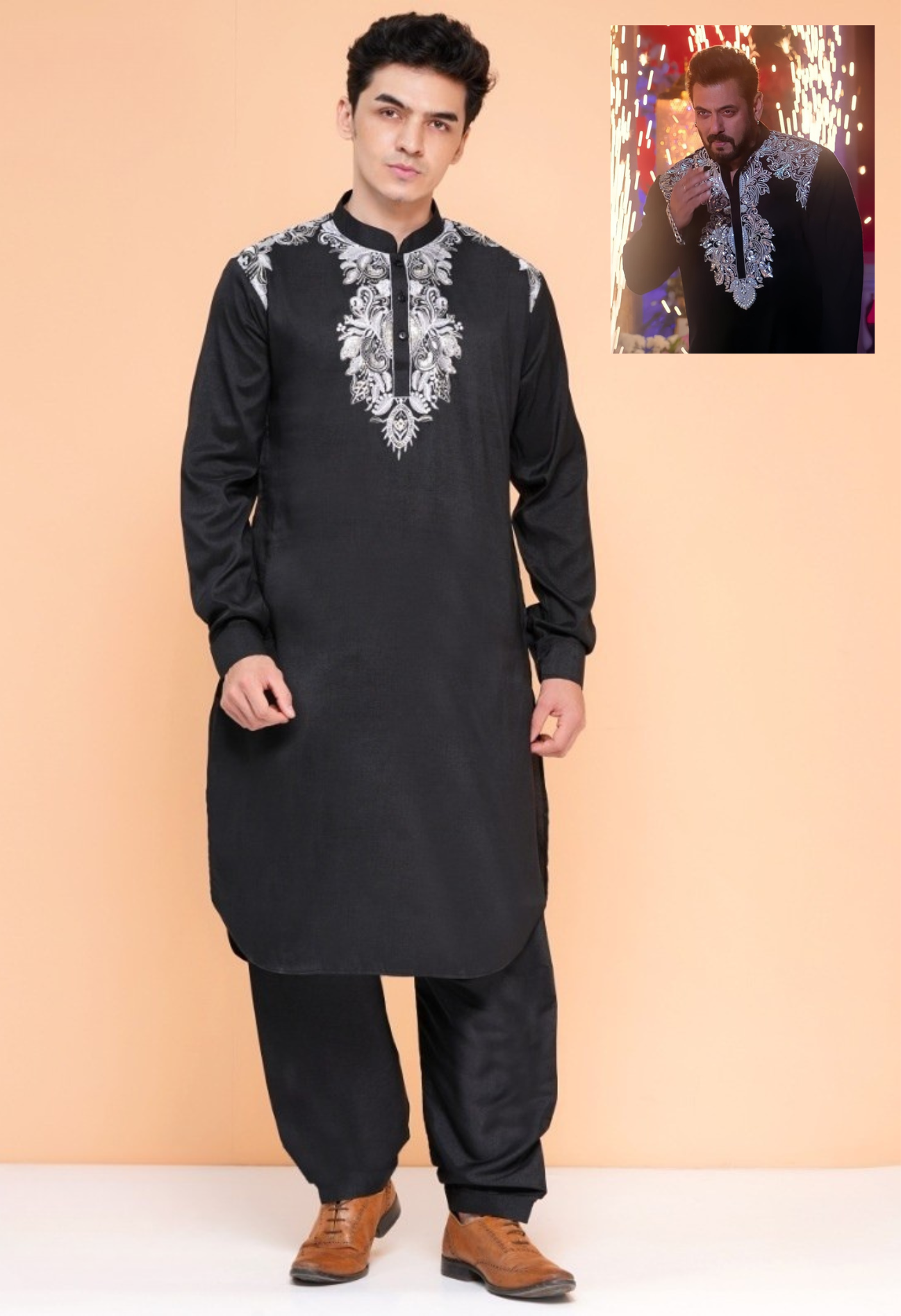 - Beautiful Men's Cotton Blend Kurta Salwar Set.