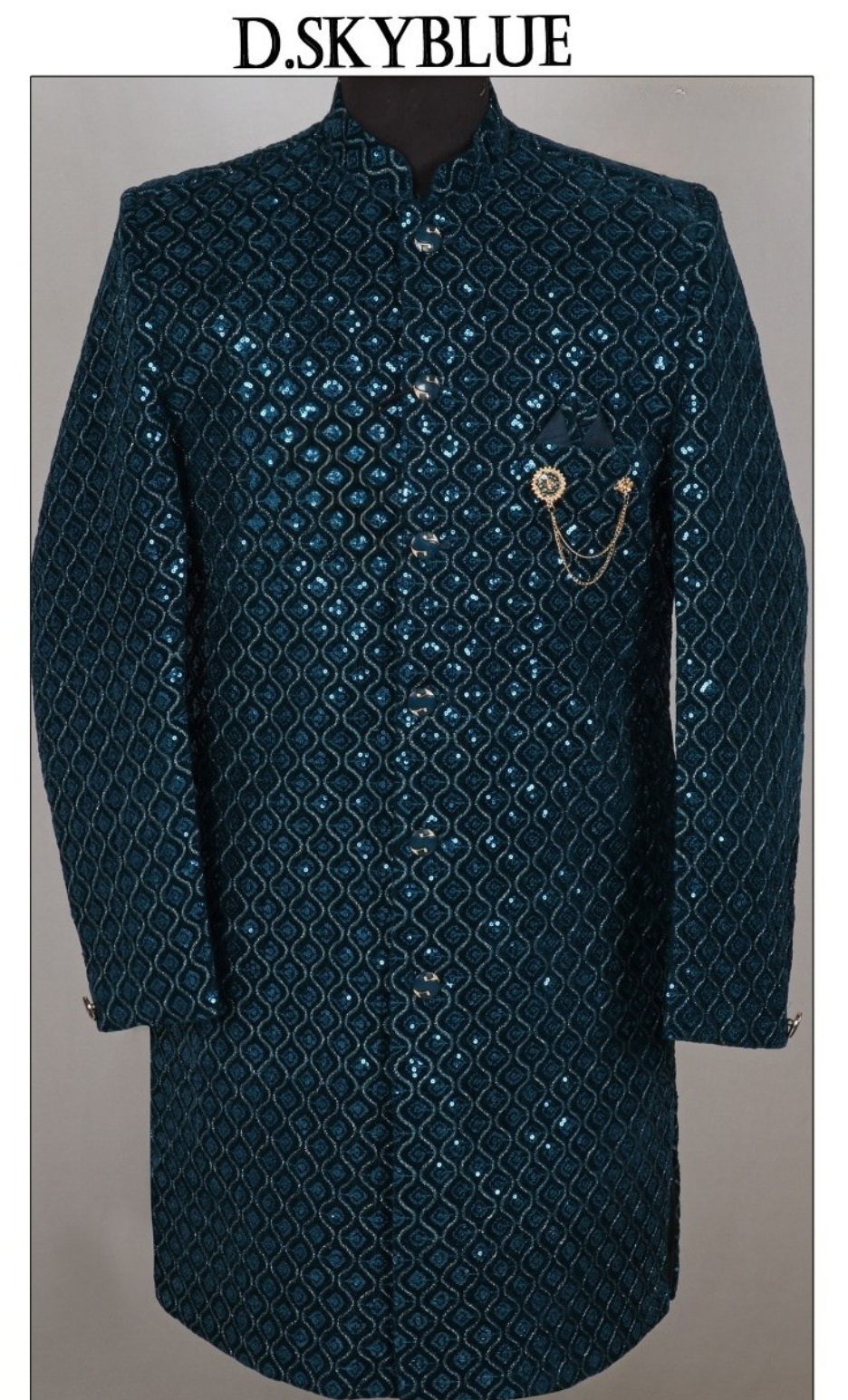 • Elegant & Beautiful Men's Indo Western Suit in Sky Blue Color.