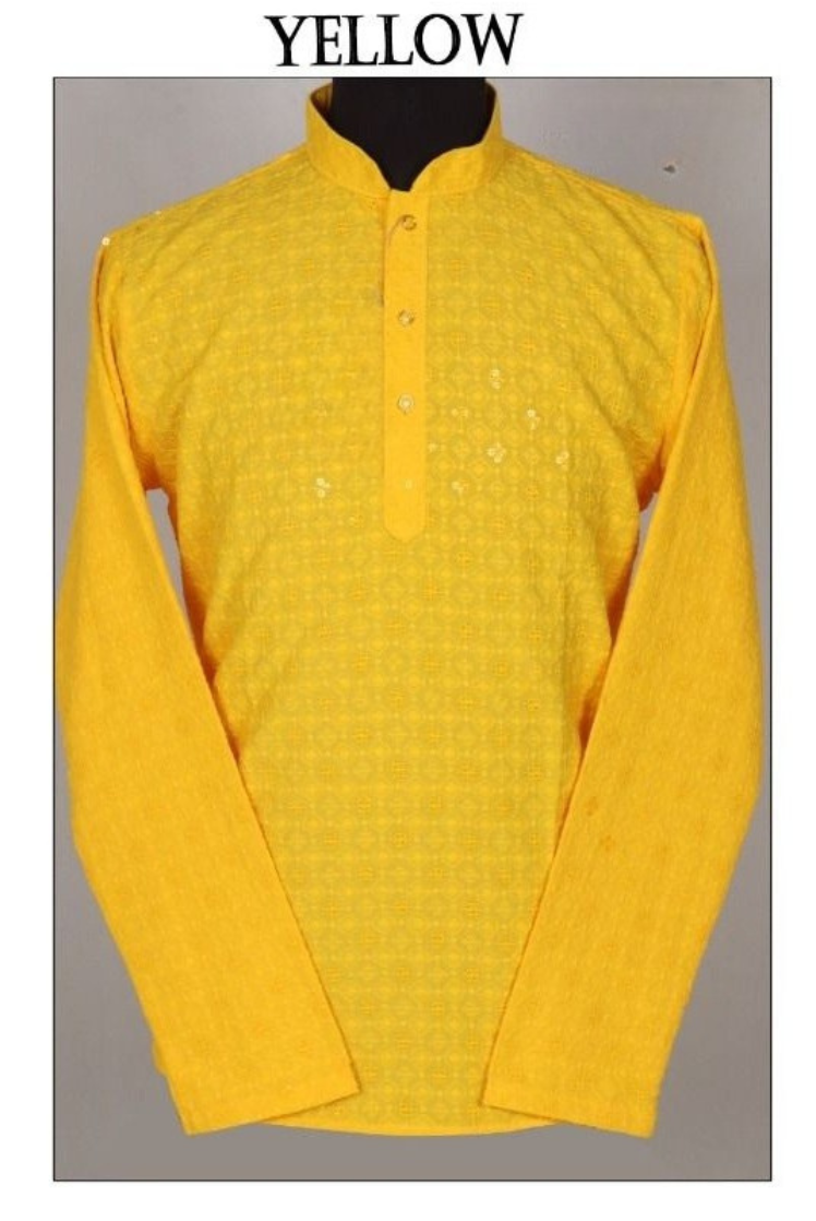 - Elegant & Beautiful Men's Yellow Sequinned Kurta Set.