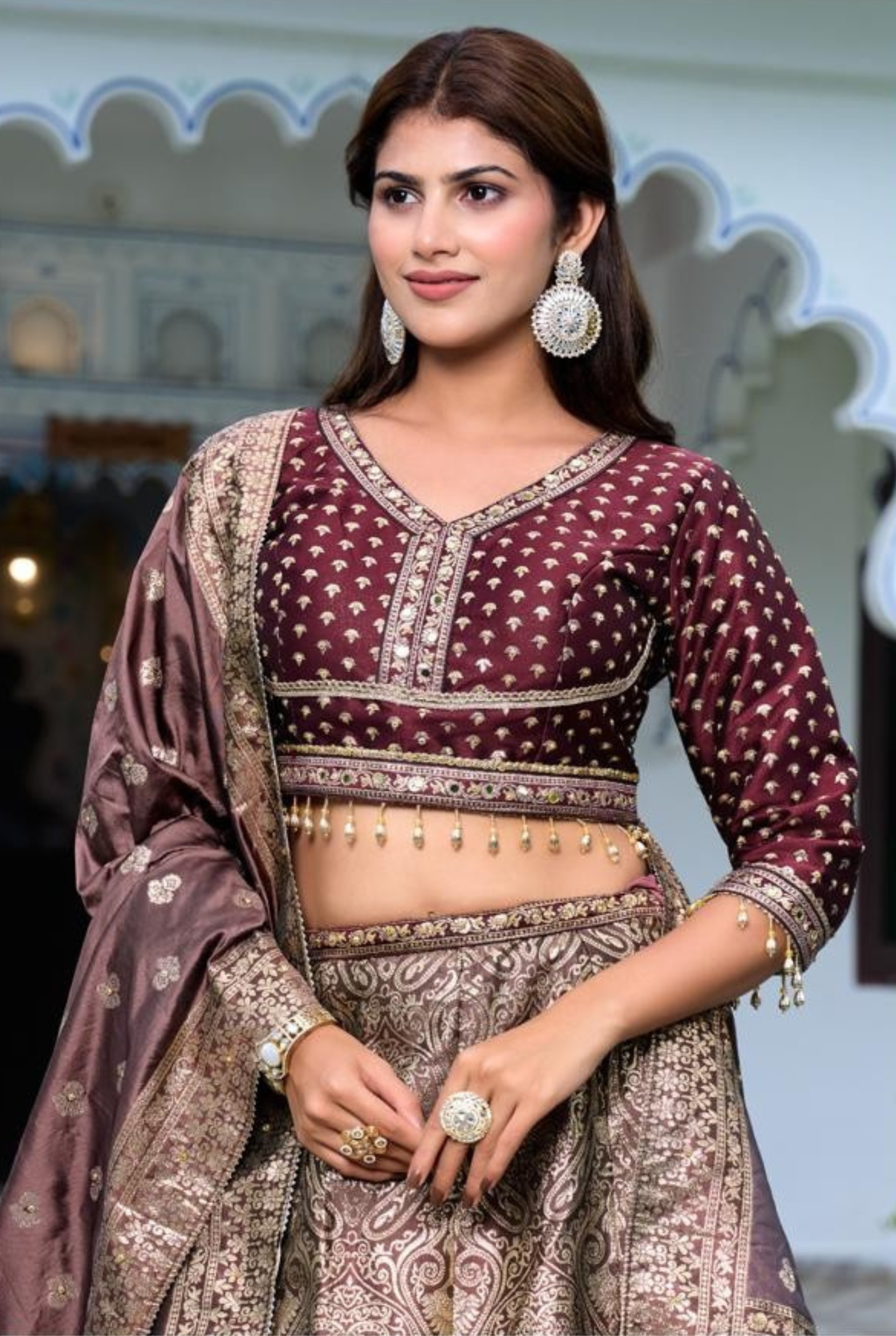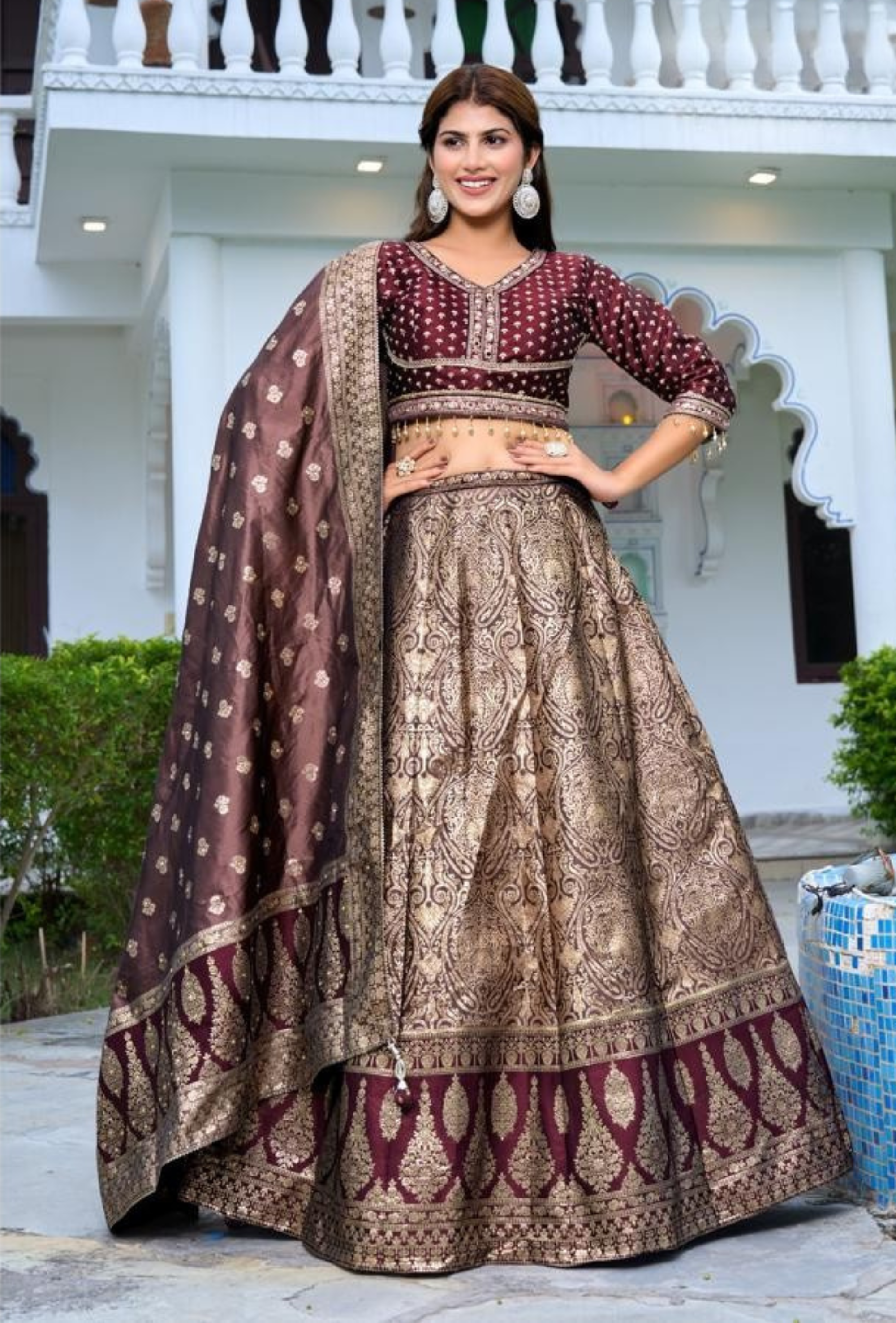 - Banarasi Silk Readymade Lehenga Choli crafted in a stunning light and dark purple combination.