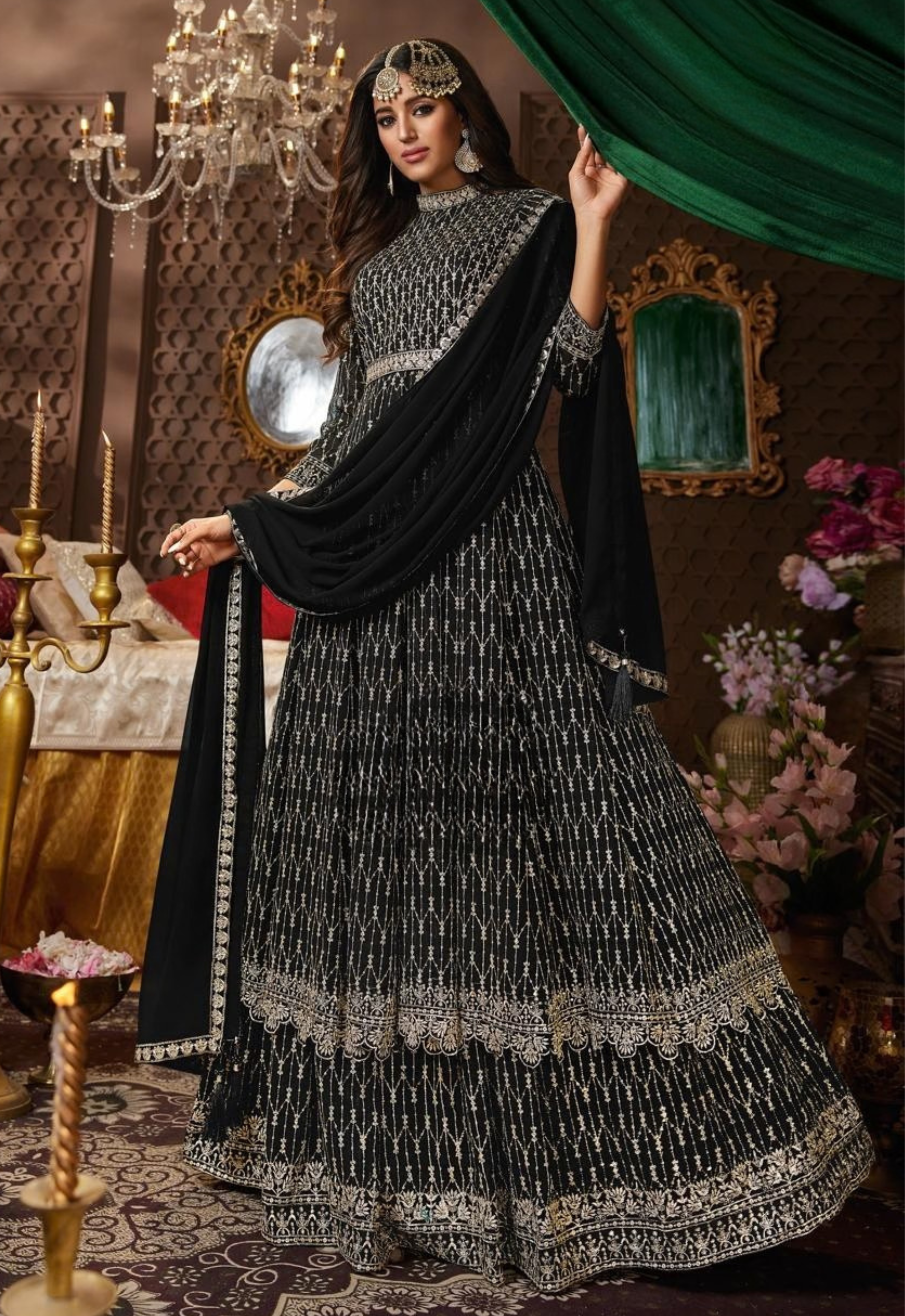 - Beautiful embroidered detailing with delicate stone work.