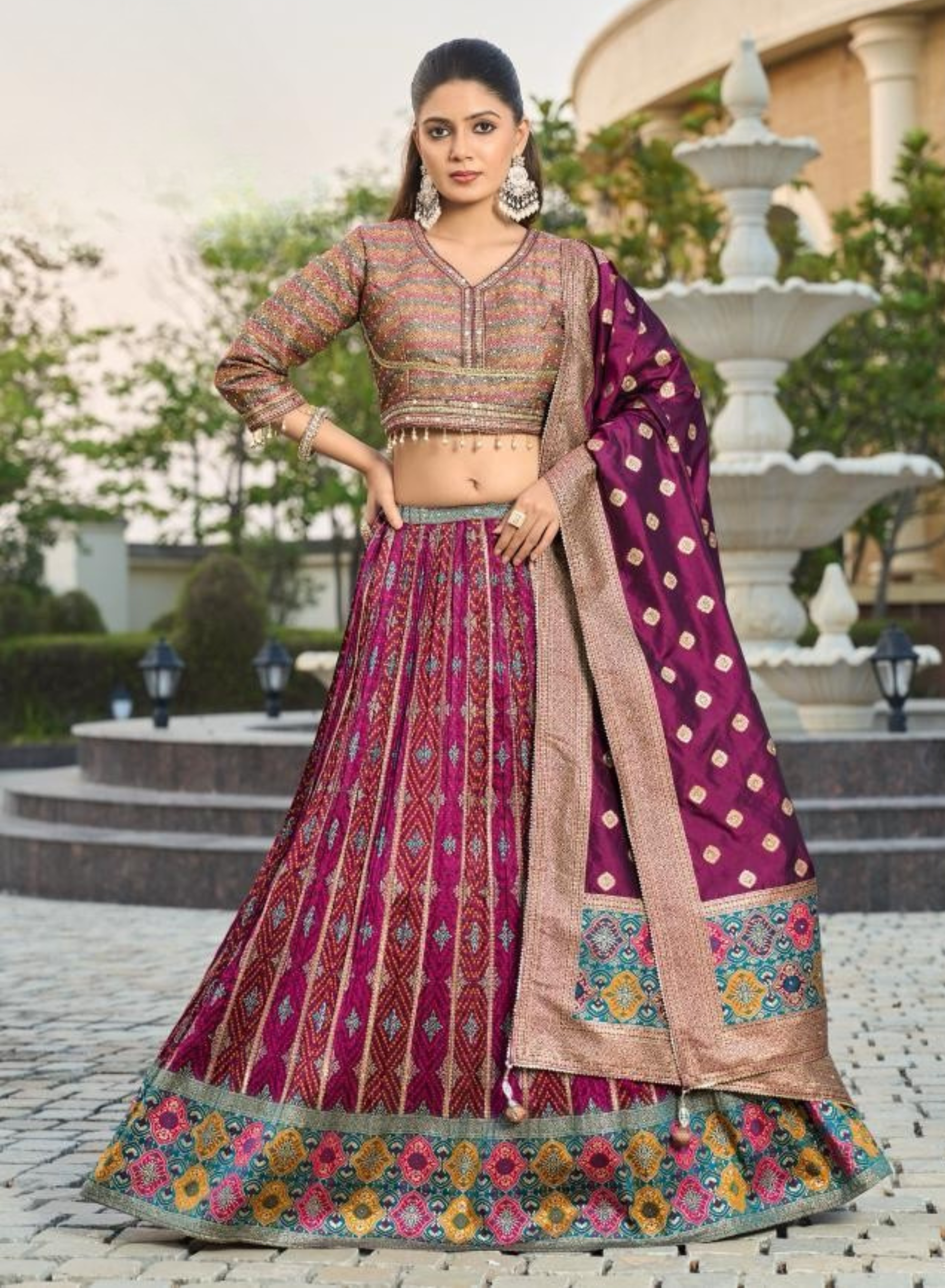 - Multicolor Banarasi Silk Readymade Lehenga Choli with rich festive appeal.