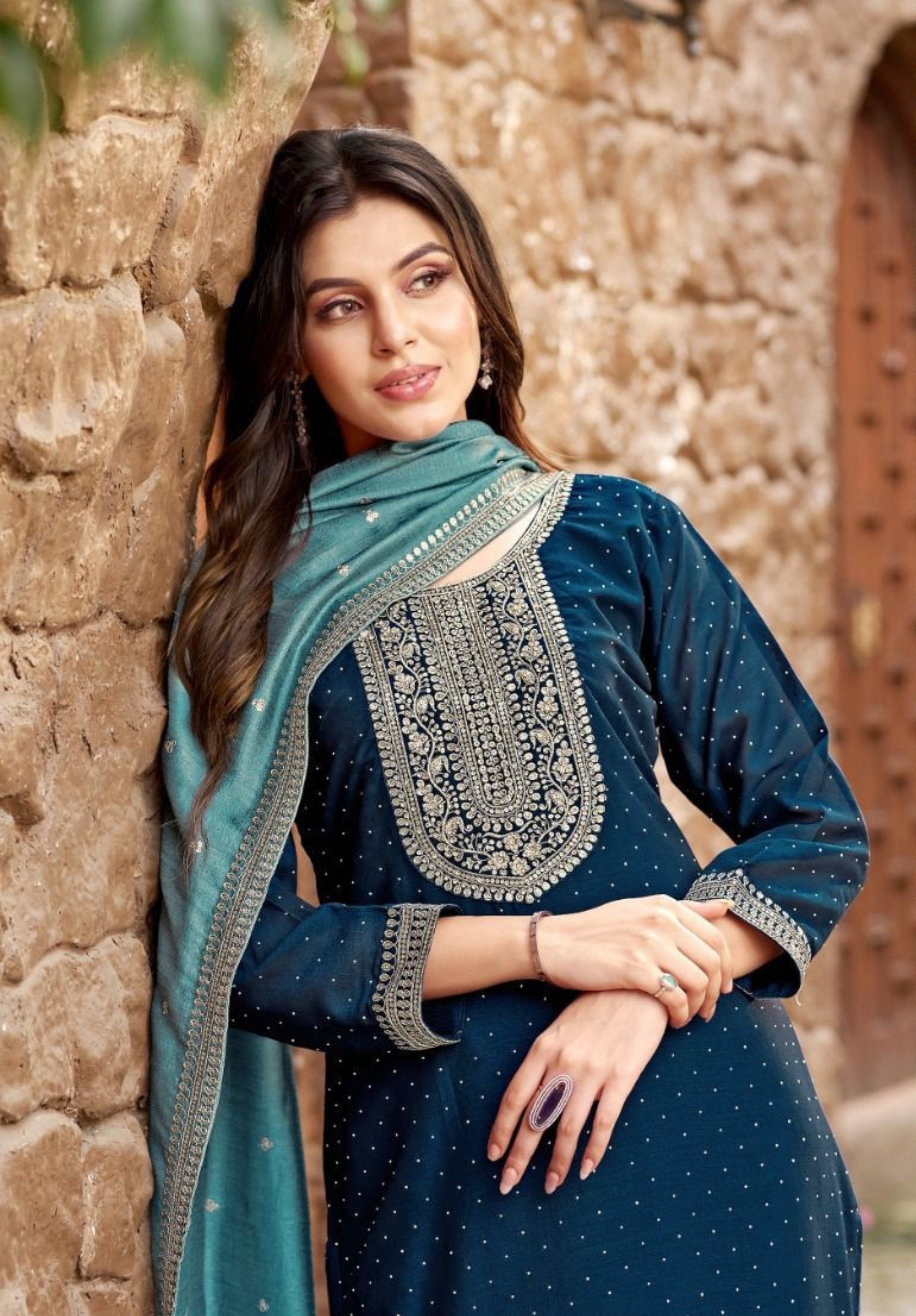 - Soft Silk fabric with delicate tiny Swarovski detailing on Pakistani Kameez.